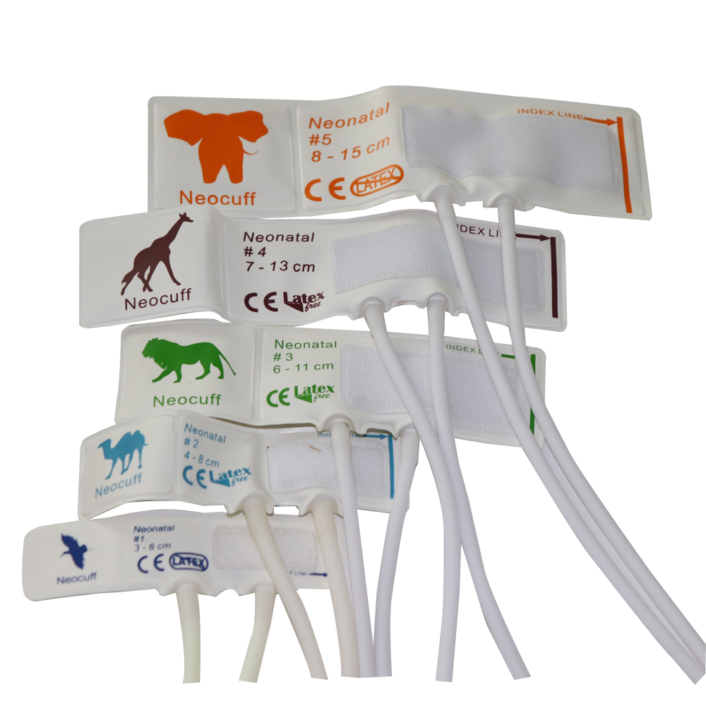ข้อมือความดันโลหิตที่ใช้แล้วทิ้งสำหรับทารก, วัสดุ nibp ข้อมือ TPU วัสดุท่อคู่ขนาด 1-5,5 ชิ้น / ถุงโดยไม่ต้องเชื่อมต่อ