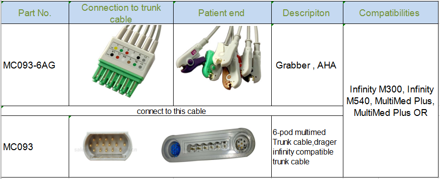เข้ากันได้กับ Leadwire Draeger Infinity M300 ECG - MS16547 6-POD ECG leadwire set