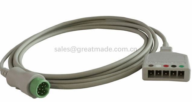 เข้ากันได้ Mindray Beneview T5 T6 T8 IPM IMEC ตรวจสอบผู้ป่วย 5 ตะกั่ว 12 พินสายเคเบิลคลื่นไฟฟ้าหัวใจ