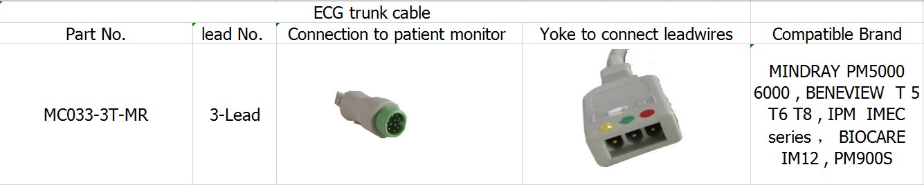 สายเคเบิล ECG Cable สายนำลำต้น 3 สำหรับ BENEVIEW T5 T6 T8, BIOCARE IM12, PM900S