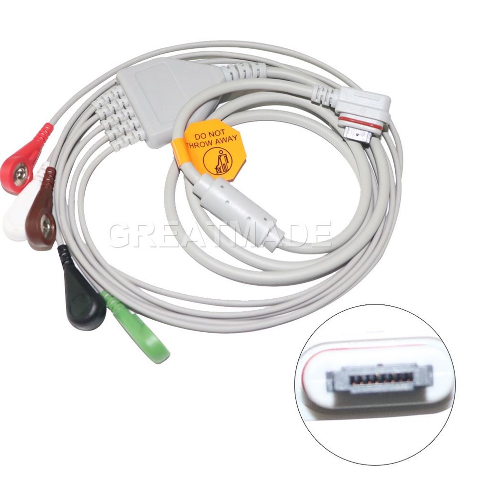เข้ากันได้ด้วย: oem no . 2008594-003 5- lead holter ecg cable leadwires สำหรับแสง ge seer, 2 channel (5-ld), aha, snap