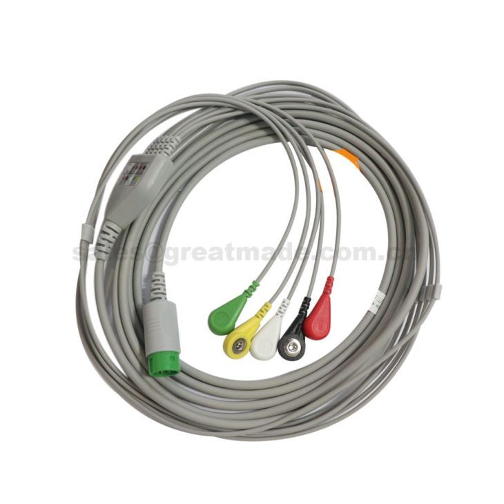 สาย ECG Shield 5-lead หนึ่งชิ้นสามารถใช้งานร่วมกับ Mindray Beneview T5 T6 T8, PM5000, PM 6000, Snap, IEC, 12ft, รอบ 12PIN