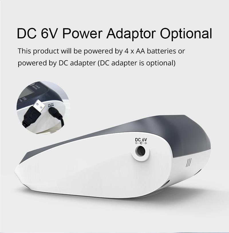 - กำลังไฟ: แบตเตอรี่อัลคาไลน์ขนาด AA 4 ก้อน