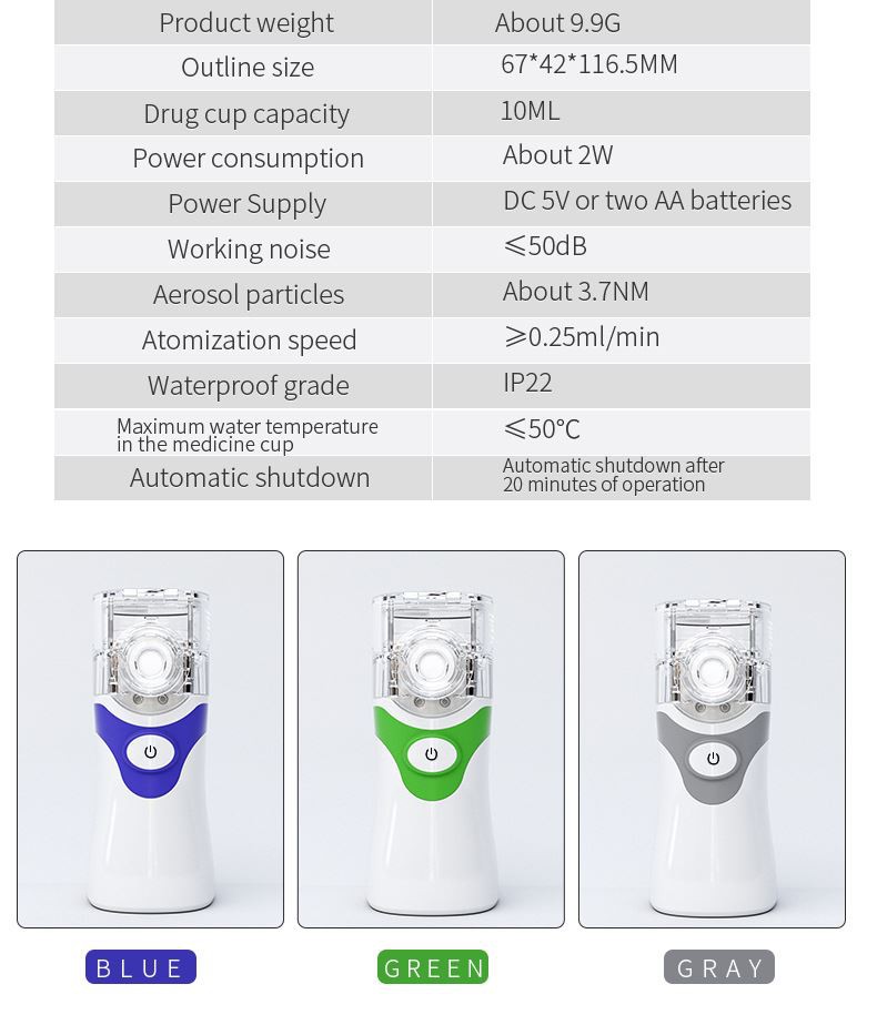 ประสิทธิภาพสูงใช้ประโยชน์จากยาอย่างเต็มที่และการพ่นละอองอย่างสม่ำเสมอสำหรับการรักษาโรคทางเดินหายใจทั่วไปเช่นหวัดเจ็บคอไอกล่องเสียงอักเสบหลอดลมอักเสบปอดบวมโรคหอบหืด